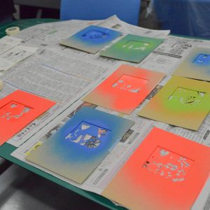 【ステンシル】絵柄をくり抜いた型紙の上から塗料を転写すること